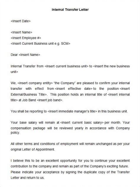 Internal Transfer Letter Template . For letters transferring employees from one department to another department, consider incorporating a free download example in. Download our hr internal transfer letter template in docx format.